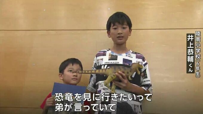 (陵南小学校6年生 井上恭輔くん)「恐竜を見に行きたいって弟が言っていて。だから一緒に見に行こうかっていう話になって来ました。まさか1万人目に選ばれるとは思いませんでした」