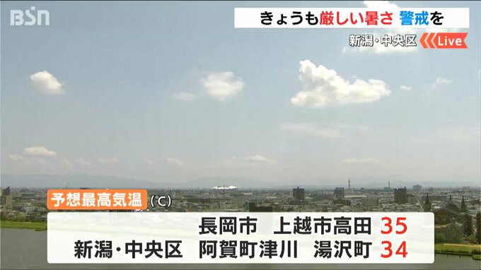 環境省と気象庁は熱中症の危険性が極めて高い気象状況になることが予測されるとして新潟県に「熱中症警戒アラート」を発表しています。