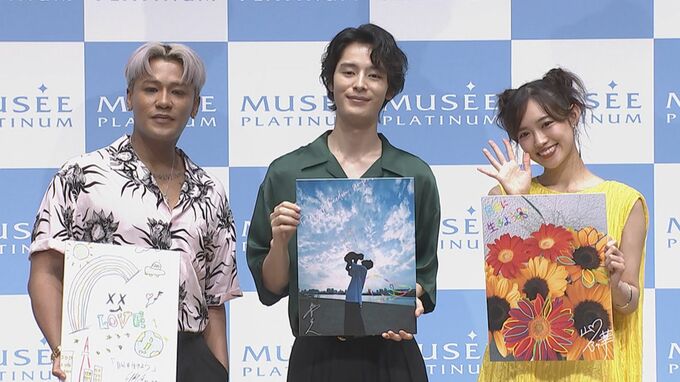 ELLYさんが手がけたアート作品は虹、東京タワー、地球、宇宙、Loveが手書きで描かれていて、“子どもっぽいけど、自分らしく純粋に描いた。下手でもいいから「思いよ届け」”と作品に込めた思いを語りました。また“まだ出ていない三代目 J SOUL BROTHERSの新曲のデモを聴きながら描いた”と制作秘話についても明かしました。