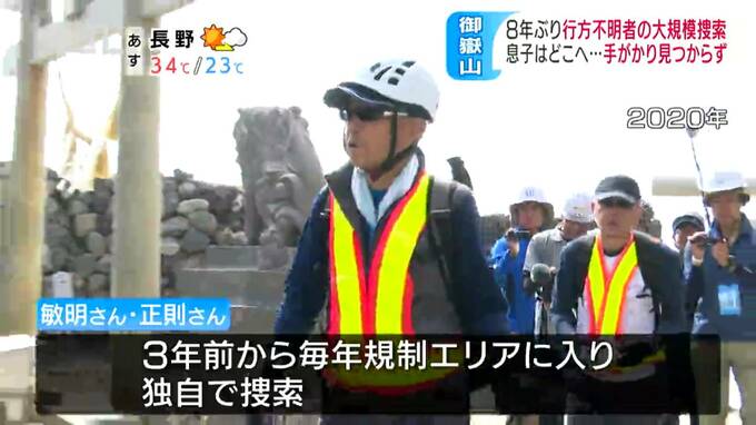 敏明さんと正則さんは、王滝村から特別に許可を受け、3年前から毎年規制エリアに入り、独自で捜索を実施。