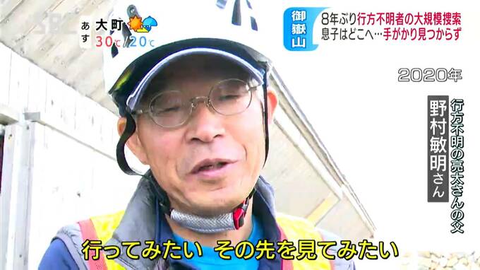 9年前の御嶽山の噴火災害で、息子の亮太さん(当時19歳)の行方がわかっていません。