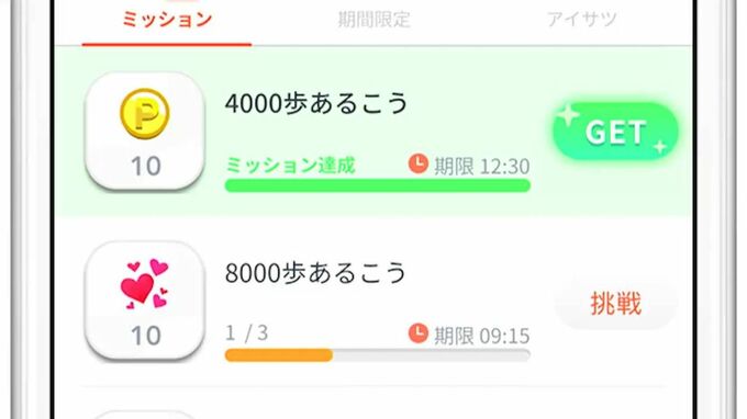 スマホに専用アプリをダウンロードすると、1日に歩いた数に応じてポイントが付与されるほか、