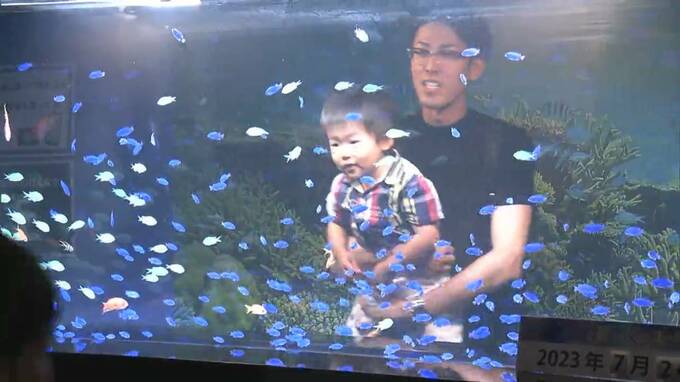 会場には海の中にいるような写真が撮れるコーナーも設けられ、家族連れらが楽しんでいました。