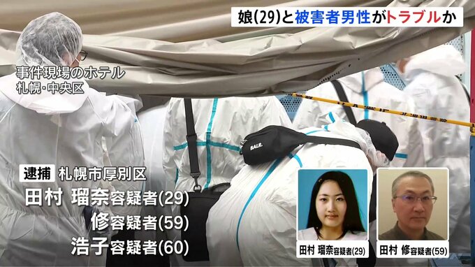 札幌・ススキノのホテルで男性が殺害され、頭部が持ち去られた事件で、逮捕された29歳の女と男性が事件前にトラブルになっていたとみられることがわかりました。田村瑠奈容疑者(29)と父親で医師の修容疑者(59)…
