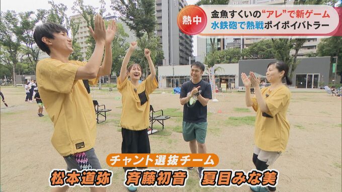 楽しそうなので、「チームチャント」を結成し、ポイポイバトラーの大会に参戦しました。メンバーは松本道弥アナ、斉藤初音アナ、夏目みな実アナの3名です。