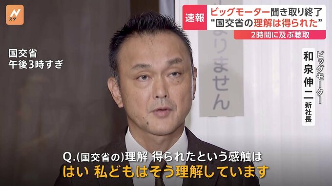 中古車販売会社のビッグモーターがわざと車を傷つけるなどして保険金を不正に請求していた問題。先ほど、国交省による聞き取り調査が終わり、ビッグモーター側は「理解は得られた」と述べました。ビッグモーター …