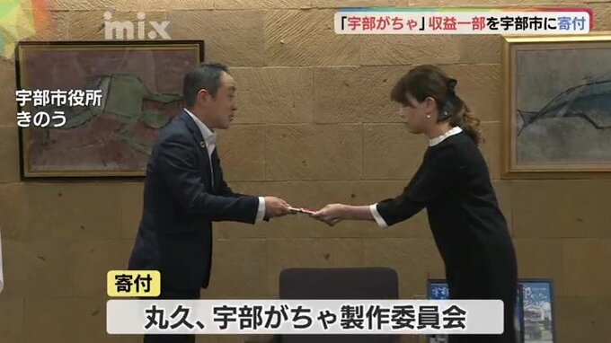 寄付をしたのはスーパー丸久や、個人で組織する「宇部がちゃ製作委員会」です。