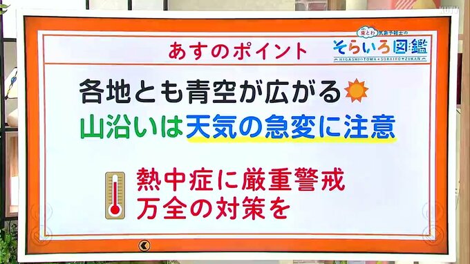 27日は、各地とも晴れ。山沿いでは、天気の急変に注意してください。また引き続き熱中症に、厳重な警戒を!東杜和気象予報士が高知の天気を詳しく解説します。