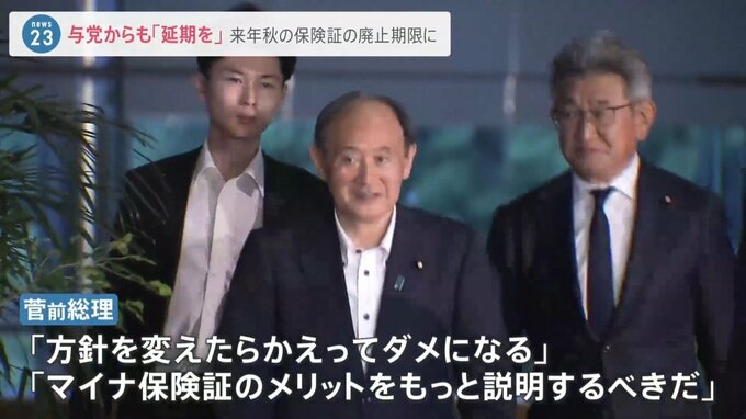 また、関係者によりますと、20日、岸田総理と会談した菅前総理は「方針を変えたらかえってダメになる」「マイナ保険証のメリットをもっと説明するべきだ」などとアドバイスしたということです。