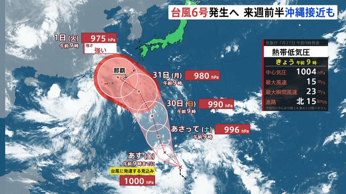 大型で強い台風5号は、台湾の南にあって、今後北上を続け、中国大陸へ進んでいく見込みです。先島諸島では、引き続き高波に警戒です。一方、南の海上にある熱帯低気圧は、今後24時間以内に台風6号へと発達するでし…