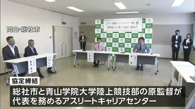 総社市は、今年度から準備を始めている中学校の部活動の地域移行について、不足しているスポーツの指導員を育てるための協定を青山学院大学陸上競技部の原晋監督が代表を務める一般社団法人と結びました。