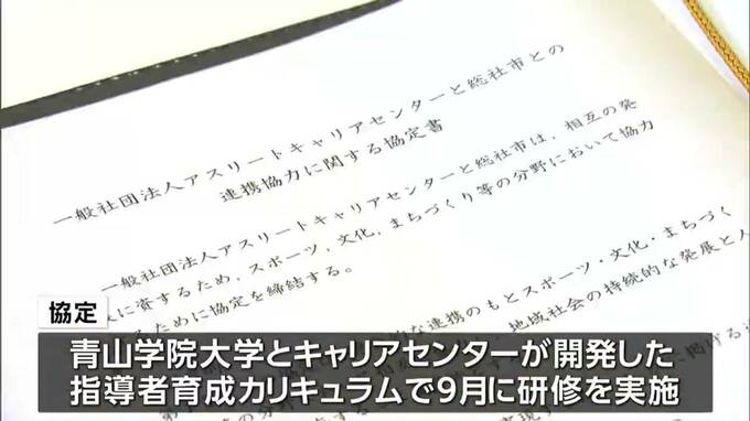 アスリートキャリアセンターが自治体と協定を結ぶのは県内では初めてで、全国では萩市に続き2例目です。