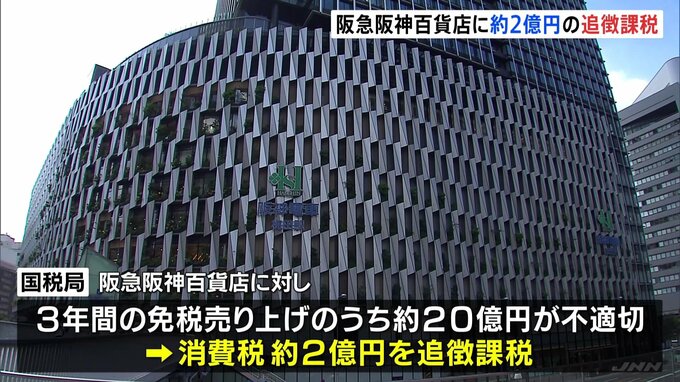 阪急阪神百貨店が大阪国税局の税務調査を受け、免税販売を巡って、およそ2億円を追徴課税されたことがわかりました。関係者によりますと、阪急うめだ本店や阪神梅田本店など複数の店舗で、去年3月までの3年間に、…