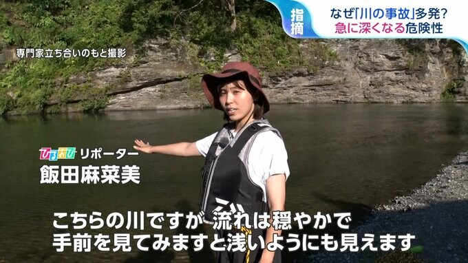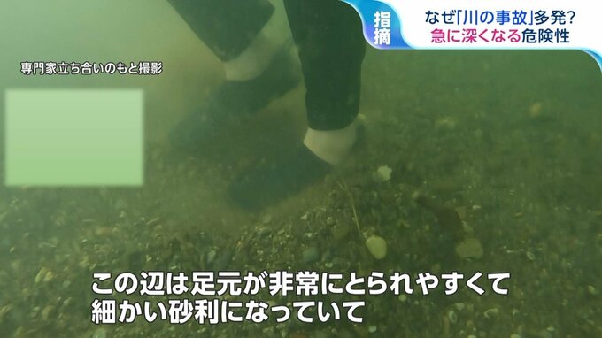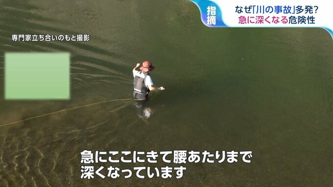 どのあたりから深くなるのか?川底の様子は?実際に川に入り、その危険を取材しました。