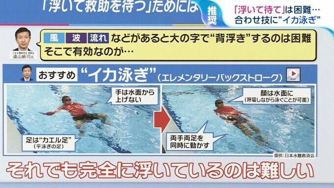 万が一流されてしまった場合、遠山氏が勧めるのが“イカ泳ぎ”です。