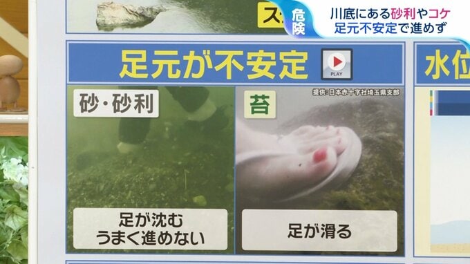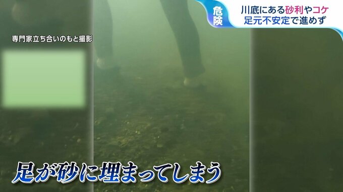 川底にある石などに付着している恐れがあり、転倒し流されてしまう危険性があります。