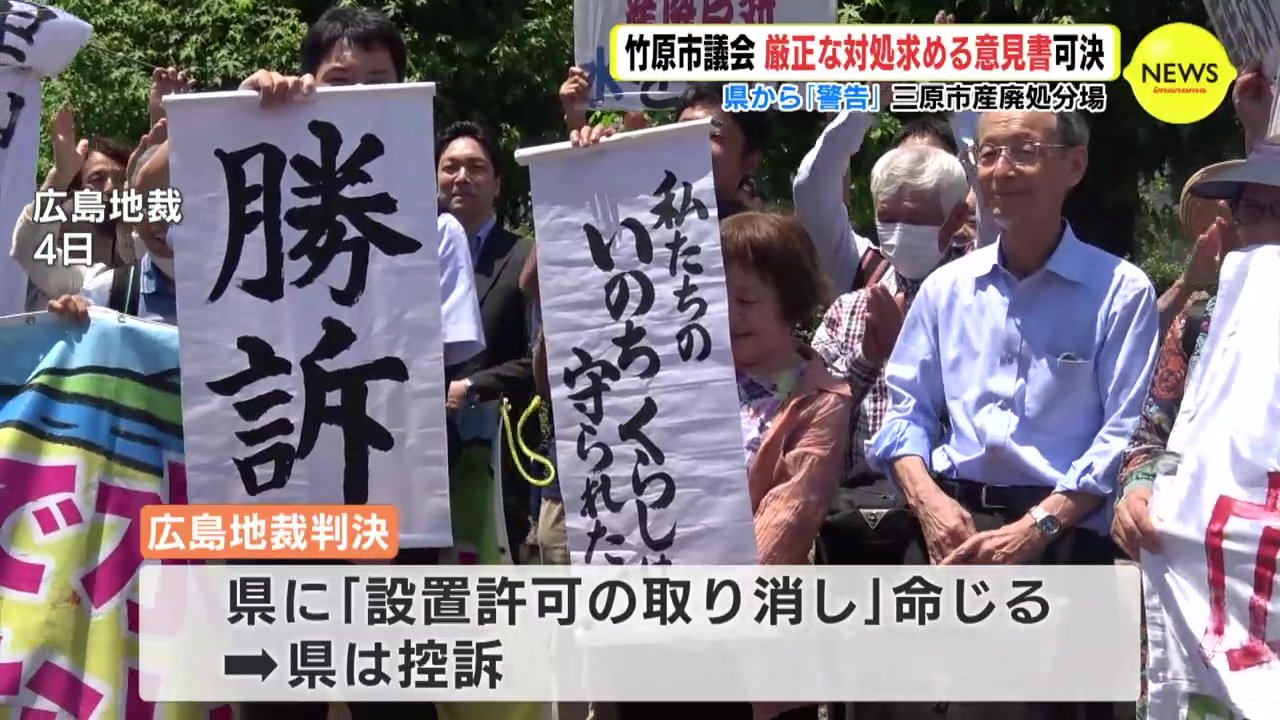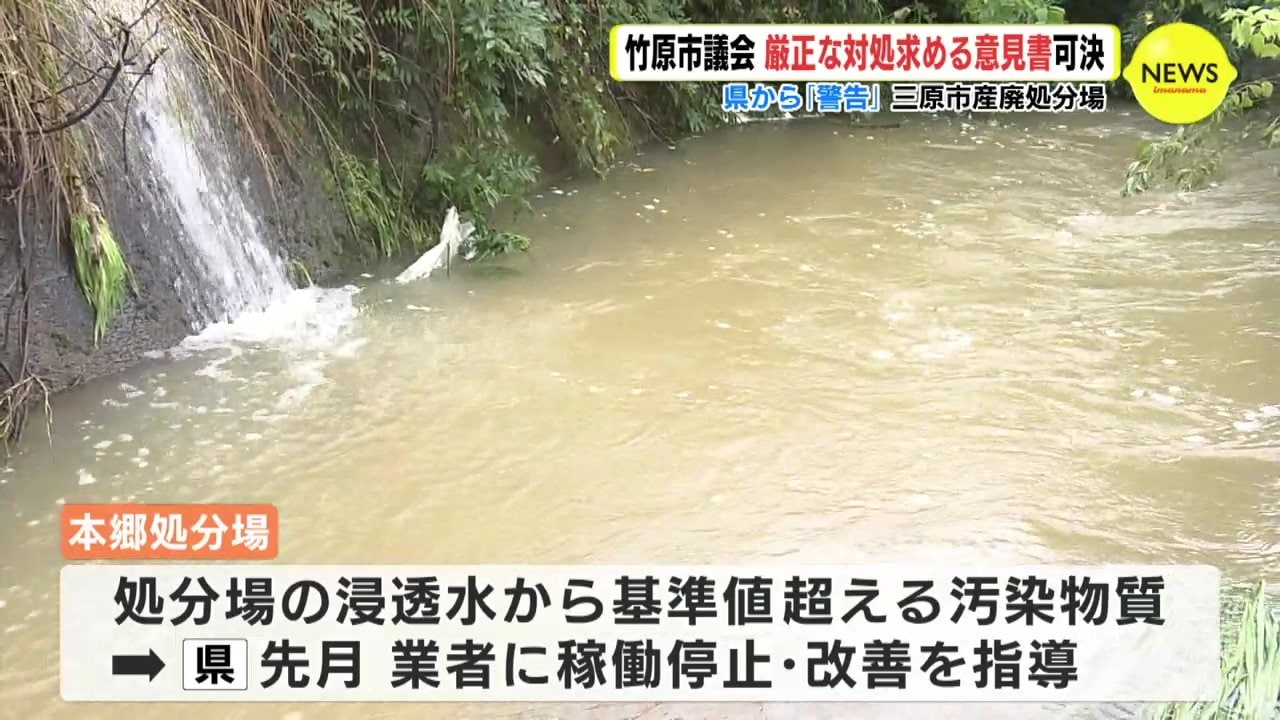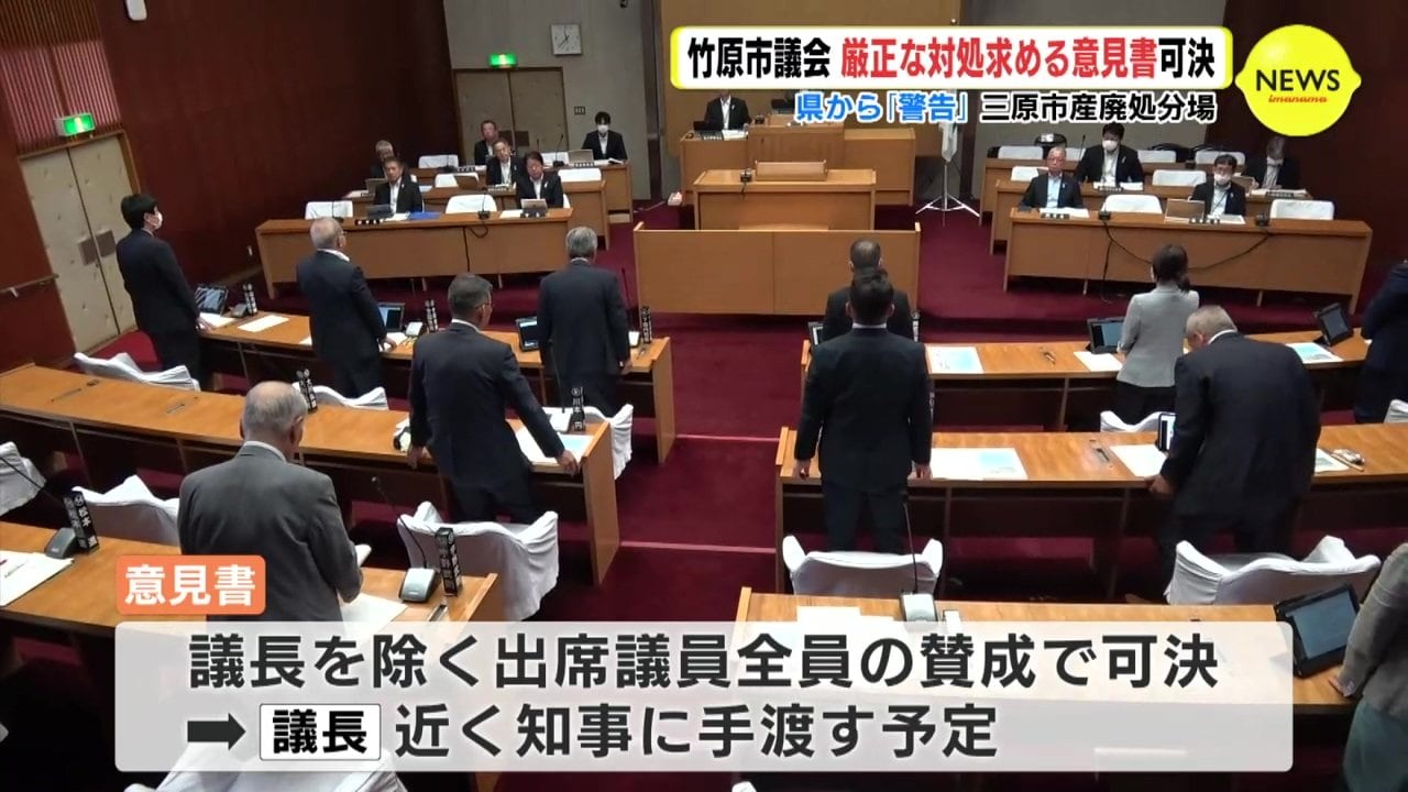 水質汚染が確認されたあとも廃棄物の搬入が続けられたため、広島県から「警告」を受けている三原市の産廃処分場について、竹原市議会は知事に厳正な対処を求める意見書を可決しました。