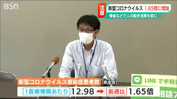 新潟県内では新型コロナウイルス感染症の定点当たりの報告数が前の週と比べて1.65倍に増えました。県は帰省などで人の移動が増える時期を前に、改めて感染対策の徹底を呼び掛けています。