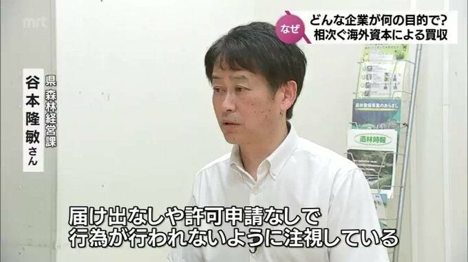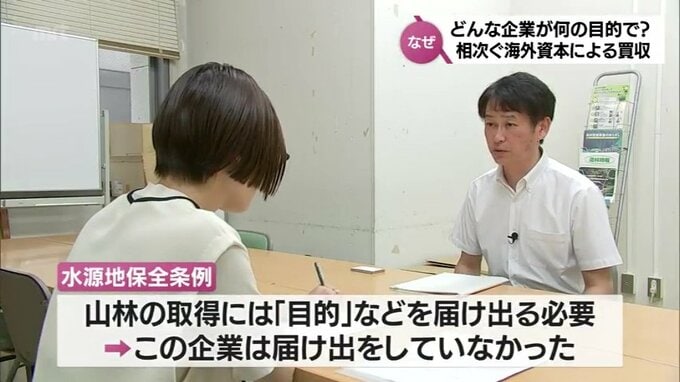 県は、企業側にコンタクトを取り、必要な書類を提出してもらったが、目的については、「森林の取得・管理」としか記されていなかった。