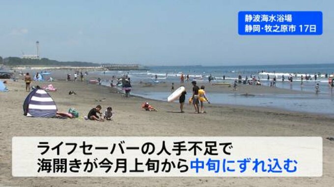 例えば静岡県・牧之原市の静波海水浴場では、ライフセーバーの人手不足のため、海開きが7月上旬から中旬にずれ込んだということです。