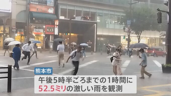 熊本市では、午後5時半ごろまでの1時間に、52.5ミリの激しい雨を観測しました。