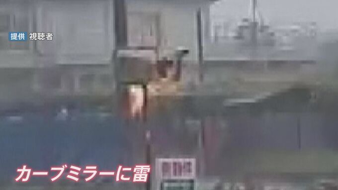 視聴者提供の映像には、山梨・笛吹市のカーブミラーに、雷が落ちる様子が映っていました。