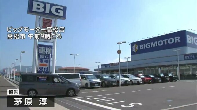 (茅原淳記者)「午前9時過ぎです。ビッグモーター高松店に四国運輸局の職員が査察のため入っていきます」