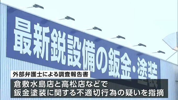 外部弁護士による調査報告書によりますと、両店舗では鈑金塗装に関する不適切な行為が行われた疑いがあることが指摘されていました。