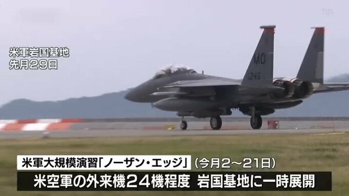 今月2日から21日まで実施されたアメリカ軍の大規模演習「ノーザン・エッジ」には、アメリカ空軍の外来機が24機程度、岩国基地に一時展開しました。
