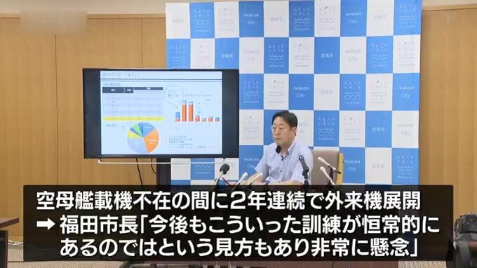 福田市長は、空母艦載機が不在の間に2年続いて外来機の展開があったことで「今後もこういった訓練が恒常的にあるのではないかという見方もあり、非常に懸念している」と話しました。