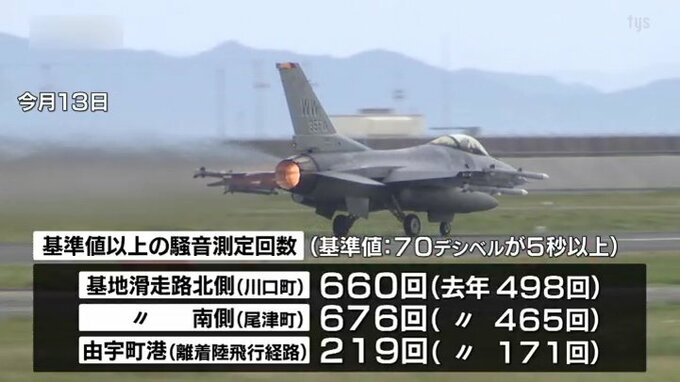 去年も同じ時期に空軍の展開がありましたが、同じ時期で比較すると騒音測定回数は3地点合わせて421回増え、苦情件数も178件多くなっています。
