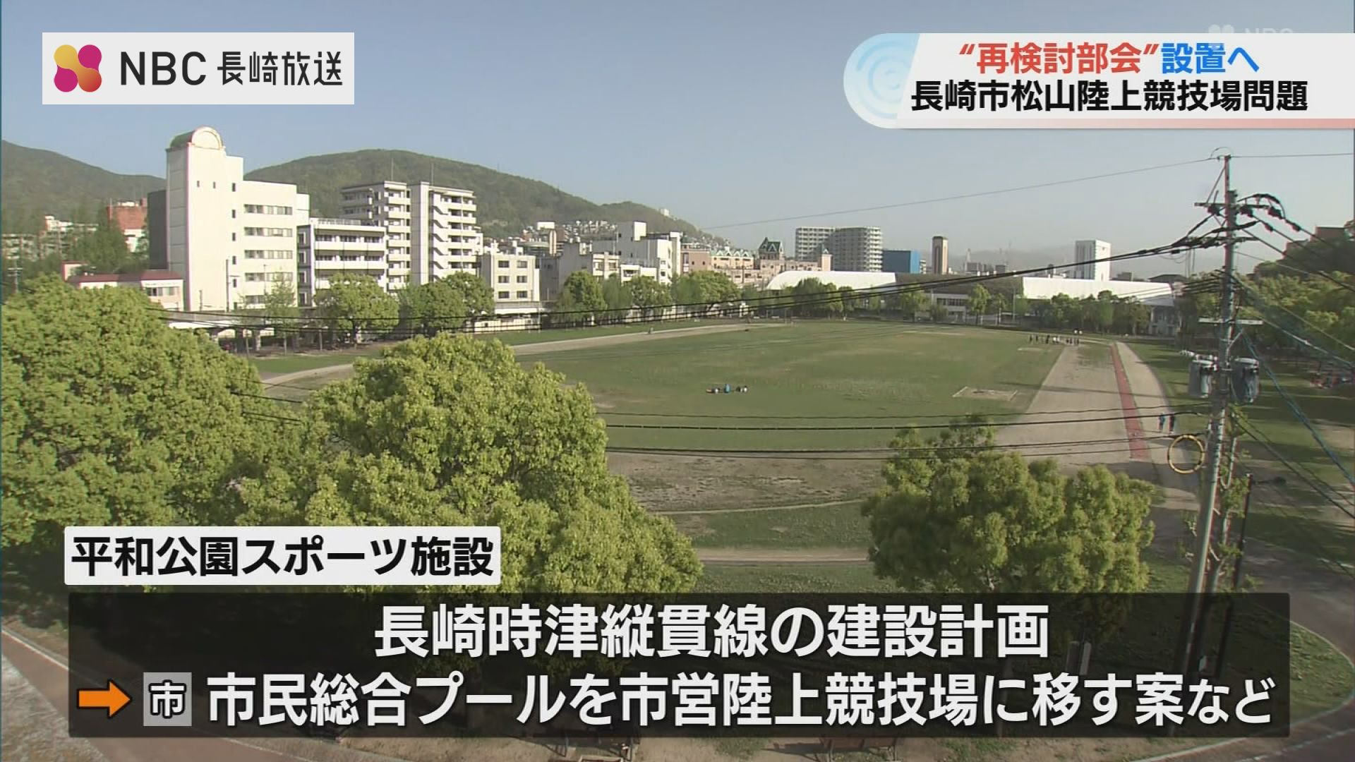 長崎市平和公園のスポーツ施設の再配置について話し合う検討委員会が開かれ、陸上競技場とプールの移転に関する再検討部会が8月、設置されることになりました。