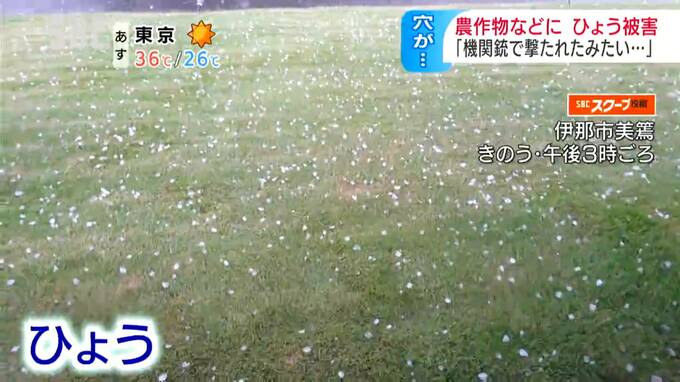 長野県内は、日中の気温の上昇と上空の寒気で大気の状態が非常に不安定になっています。27日にひょうが降った伊那市では、農作物や住宅に被害が出ました。地面に打ち付ける大量の「ひょう」。27日午後3時ごろの伊…