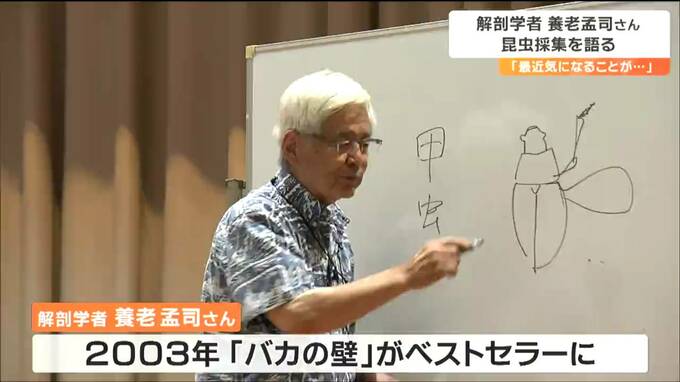 東京大学名誉教授の養老孟司さんによる昆虫採集に関する講演会が開かれ、子どもたちが虫の生態などについて学びました。