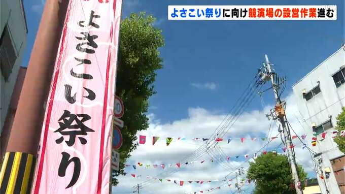 4年ぶりのよさこい祭りまであと2週間を切りました。競演場の設営作業も本格化しています。70回の節目、そして4年ぶりの通常開催となるよさこい祭りまであと2週間を切るなか、各チームや競演場では準備が大詰めに入…