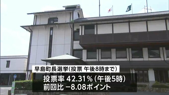 現職と新人の一騎打ちとなった早島町長選挙は福祉政策や交通政策などが争点になっています。午後5時までの投票率は、期日前投票とあわせて42.31%で、2019年の前回を8.08ポイント下回っています。