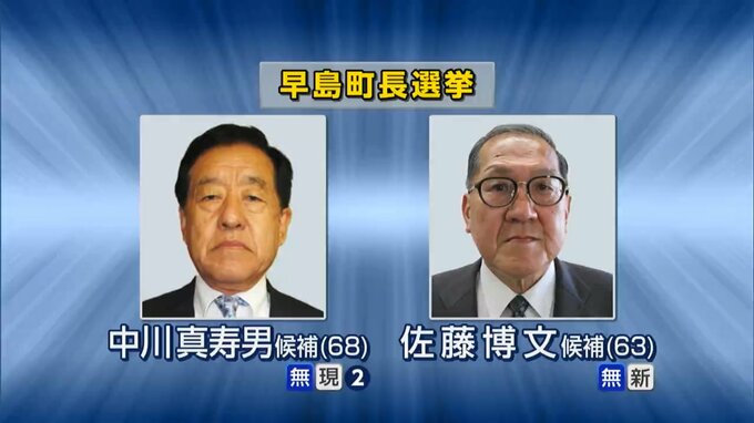 早島町長選挙には届け出順に無所属で3選を目指す現職の中川真寿男氏と無所属新人で元早島町議会議員の佐藤博文氏の2人が立候補しています。