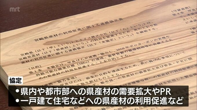 県産材の利用促進を図ろうと、宮崎県は神奈川県に本社がある企業と連携協定を結びました。県と協定を結んだのは、神奈川県に本社を置き木材や住宅の販売などを手がける「ナイス」です。県庁で行われた締結式では、…