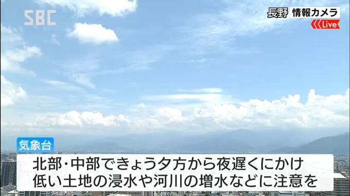 長野県内は、31日昼過ぎから大気の状態が非常に不安定になる見込みで、気象台は大雨による低い土地の浸水などに注意するよう呼びかけています。