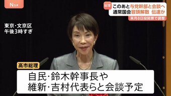 高市総理 このあと鈴木幹事長や維新・吉村代表ら与党幹部と会談予定 “解散意向”を伝達か 「来月8日投開票」で調整