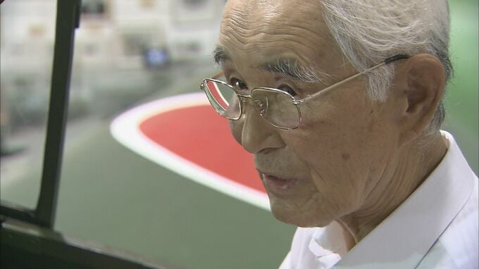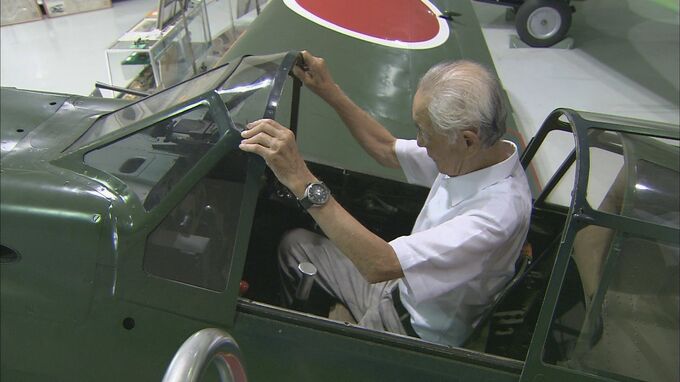 復元されたゼロ戦の座席に68年ぶりに腰を下ろす、元搭乗員笠井さん。ただ目の前の敵機を撃墜することだけが生きる道であり、国のためだと考えていたと言います。