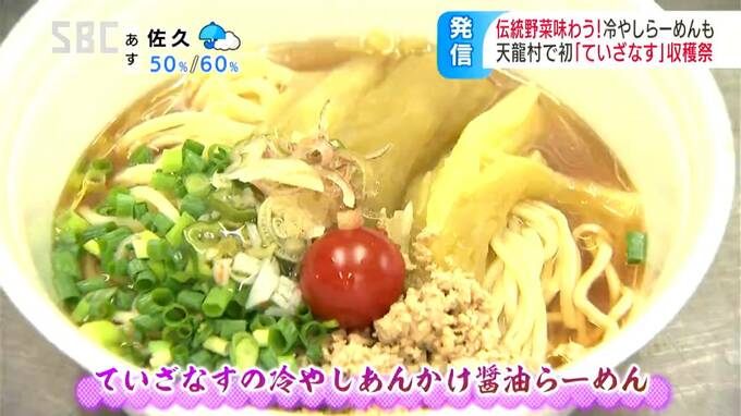 また、飯田市のラーメン店と共同開発した「ていざなすの冷やしあんかけ醤油らーめん」が無料でふるまわれました。