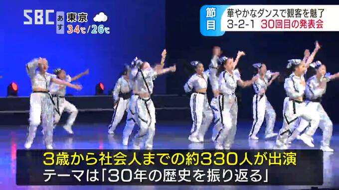 ホクト文化ホールの舞台に、3歳から社会人までのおよそ330人が立ち、30年の歴史を振り返るような衣装や音楽とともに、ヒップホップやジャズダンスなどを披露しました。