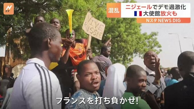クーデターが起きた西アフリカ・ニジェールの首都では、過激化したデモ隊の一部が旧宗主国であるフランスの大使館に火をつけるなど、混乱が広がっています。クーデターが起きた西アフリカのニジェールでは30日、軍…