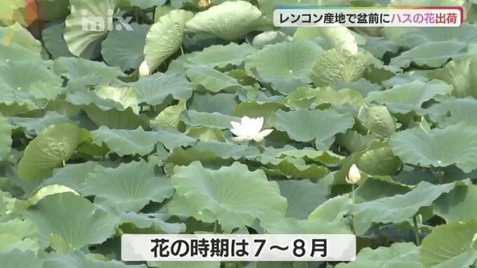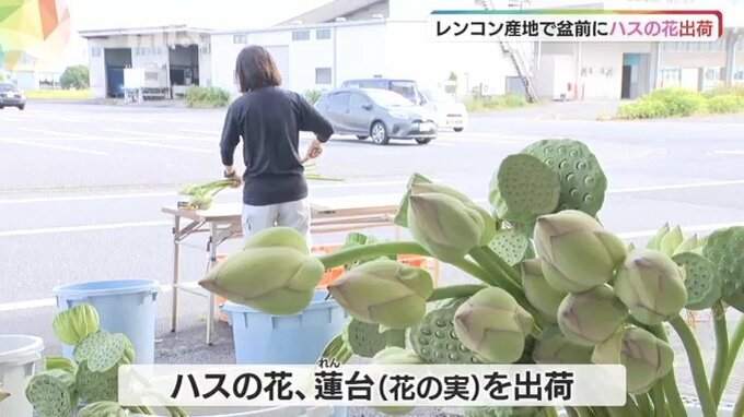 レンコンが特産の岩国市でお盆を前にハスの花の出荷作業が始まりました。