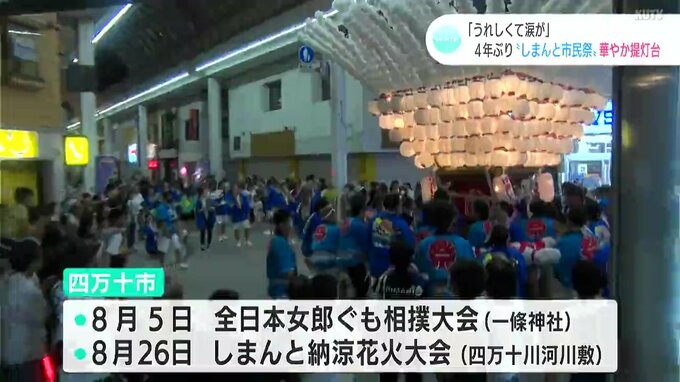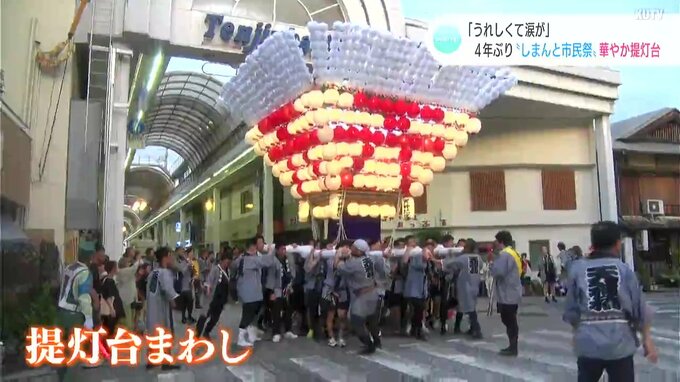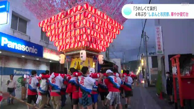 “土佐の小京都”高知県四万十市中村で29日、市民祭が開かれました。鮮やかな提灯台の灯りが4年ぶりに夜の街を彩りました。