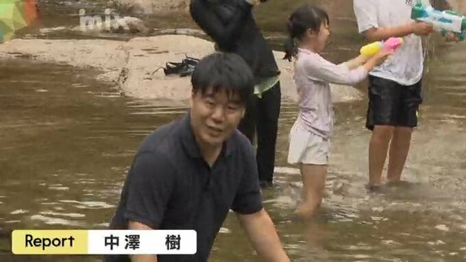 中澤樹記者「周南市の黒岩峡に来ています。川に足をつけると、水が冷たくて気持ちがいいです!ご覧のとおり子どもたちは元気よく水遊びをしています」
