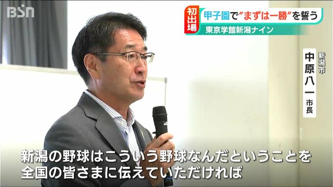 夏の高校野球新潟大会で優勝し初の甲子園出場を決めた『東京学館新潟高校』の野球部が、31日に新潟市の中原八一市長のもとを訪れ、「まずは一勝」と甲子園での意気込みを語りました。