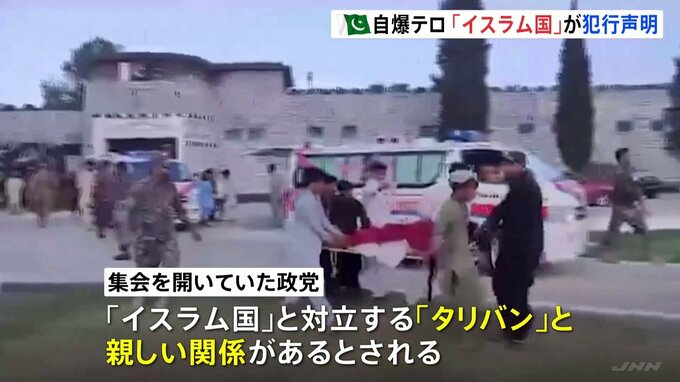パキスタンで、イスラム教の政党集会の参加者ら少なくとも54人が死亡した自爆テロ事件で、過激派組織「イスラム国」が犯行声明を出しました。アフガニスタンとの国境に近いパキスタン北西部で7月30日、イスラム教…