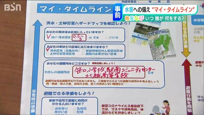 「タイムラインの用紙に浸水区域に入っていますかという欄にチェックしてください」